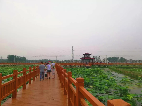 此处位于地城镇陶寨村以西,枫百岗和李集等区域,沿洪河分洪道两岸有十里景观长廊及大面积的莲荷花海。  每到夏天,花园碧波荡漾,鱼虾肥美,红荷映日......