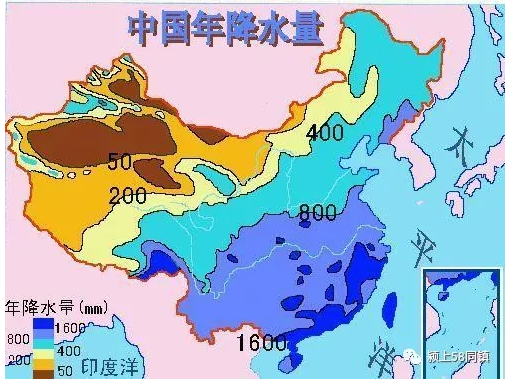 2. 相当于中国年降水750mm等降水量线(有误,应该是800MM)