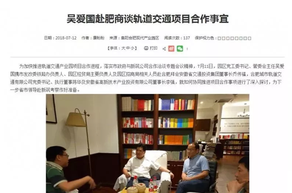 吴爱国首先传达了市委市政府对轨道交通产业园项目落户阜阳的信心与决心。吴爱国表示,轨道交通产业科技含量高,带动面广,横跨二、三产业,是国家大力支持发展的战略性新兴产业。而阜阳作为国家中部地区重要的交通枢纽,优越的地理位置、适宜的地质地貌、巨大的人口市场,使其具备较强的轨道交通及相关产业的承接能力。阜合园区作为合肥、阜阳两市合作共建的载体将充分发挥纽带作用,借助两市资源及省委、省政府的特殊政策,加强与省交投公司、合肥轨道交通公司及省高新投公司全方位战略合作,全力助推轨道交通及相关产业的发展。